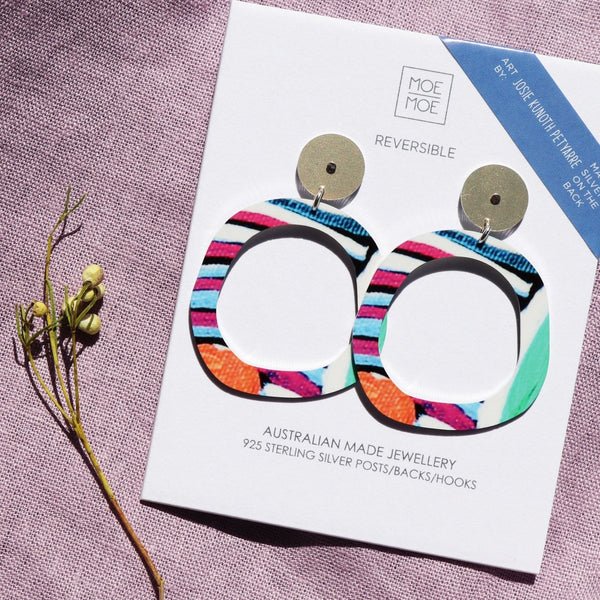 All Moe Moe earrings are lovingly designed from start to finish in our Currumbin studio for you by our team. Emma who is easily distracted by shiny objects (Owner/Designer), Erica the organiser-er (Production), Tina-Louise who does a bit of everything (Brand) and Marissa the chatterbox (Sales), all contribute to the creation of each earring by wearing, product testing, drawing, building and cutting each design until it’s just right. We hope you love the transformable pieces we have designed for you to seamlessly style from outfit to outfit with ease! Moe Moe Design is the capsule wardrobe of earrings: flip them to plain silver, swap your studs to hooks, or stack other Moe Moe pieces together to build something special for any outfit!