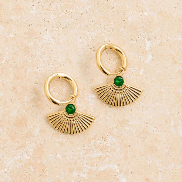 Beautifully handcrafted, Sia is a gorgeous Egyptian style earring featuring a beautiful emerald stone.