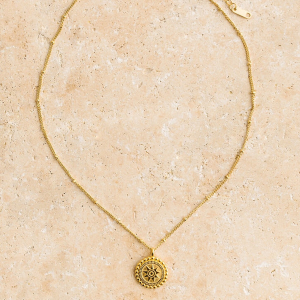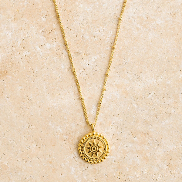 Made for the Sun chasing wanderer, SUNRISE is a divine necklace featuring a pendant of the sun.