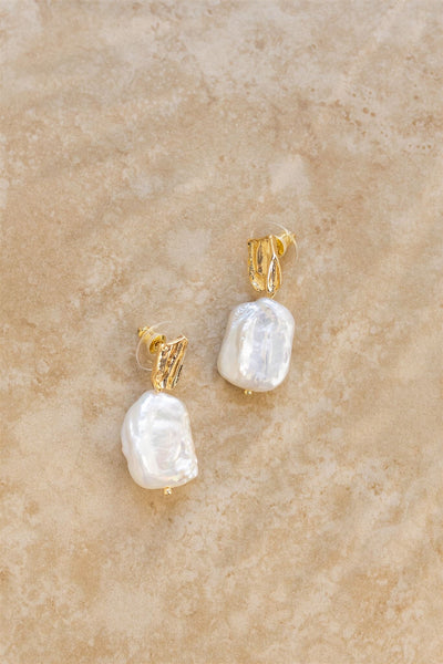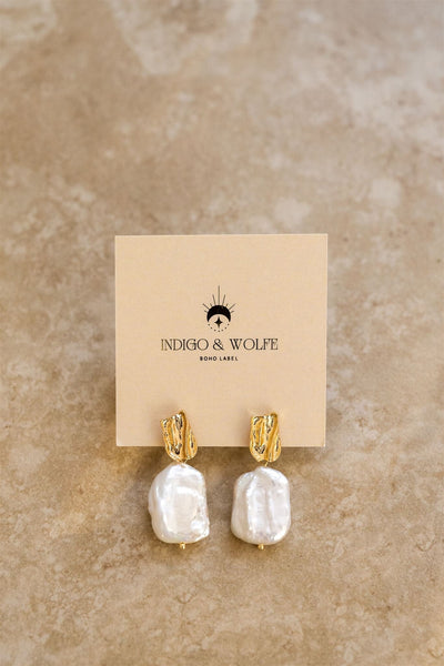 A beautiful pair of crushed gold earrings featuring a unique baroque pearl.