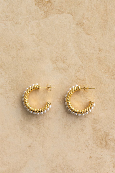 Elle is a gorgeous pair of gold hoops featuring a layer of fresh water pearls. If you are a lover of pearls this set is just for you!