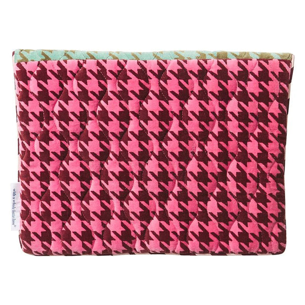 “A fresh take on a classic design, this luxurious clutch is the perfect size for carrying your most vital belongings when on the go. Its textural quilted velvet design and fun mix of multicoloured houndstooth brings excitement and playfulness to any ensemble.” – Phoebe’s Style Notes
