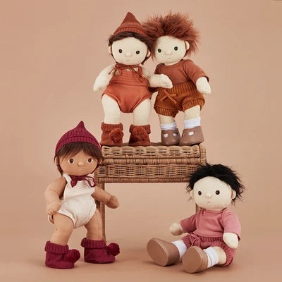Keep your Dinkum Doll toasty with bonnets and booties! The Plum Knit Set features a snug little pixie hat with a bowtie, and hard-soled booties with a knit cuff and fluffy pom poms on the toes! Your Dinkum Doll can even stand up in the booties! So much fun for kids who love to accessorise their Dinkum Dolls.