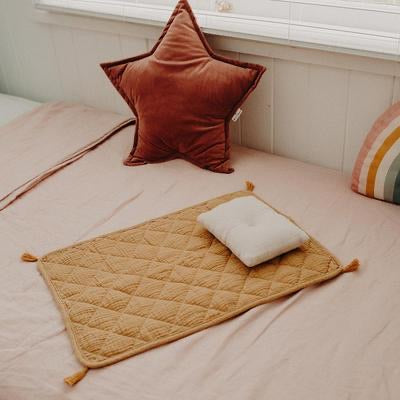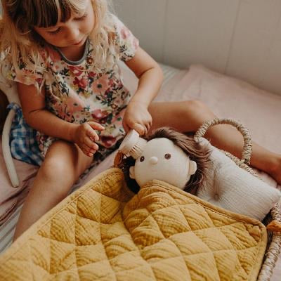 We can’t promise that your kiddo will sleep a wink, but their Dinkum Doll will get the royal treatment in our Organic Cotton Bedding Set. The dream team comes with a squishy pillow and tiny duvet in the softest mustard hue {don’t even get us started on the tassels!}.