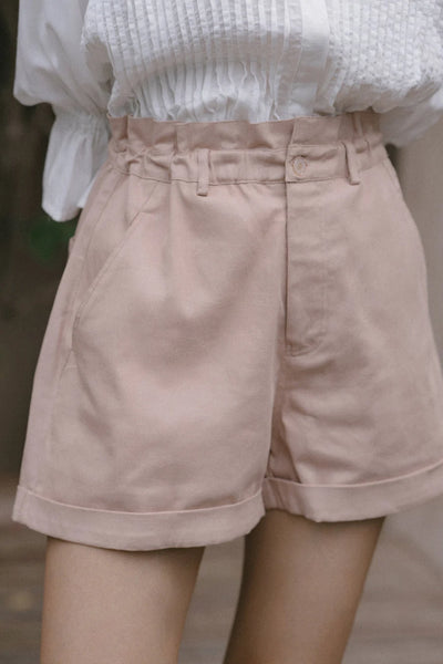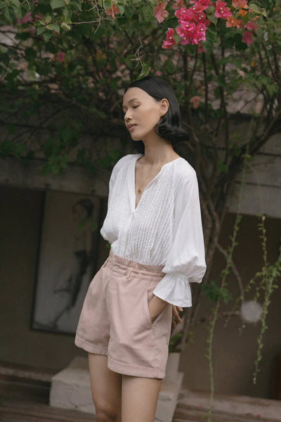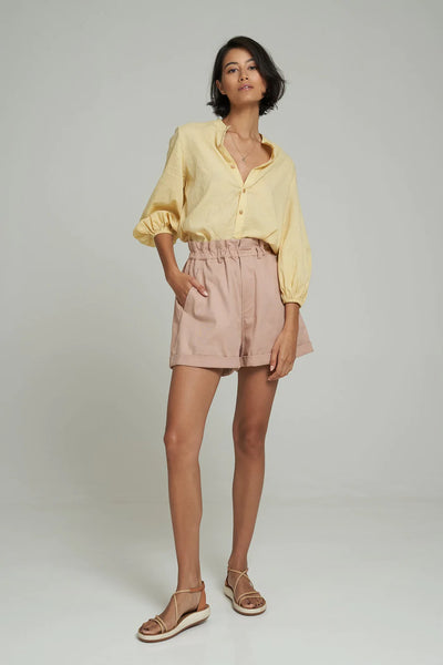 The Malle Short is a loose-fitting, high waisted short that is easy and comfortable to wear. These cotton shorts by LILYA come in this muted dusty pink colourway and feature an elastic paper bag waist, front zip and button and deep pockets. These must have cotton shorts can be worn casually with a singlet on the weekend or dressed up with a tucked in blouse and are a great length for those not wanting to not show too much leg.