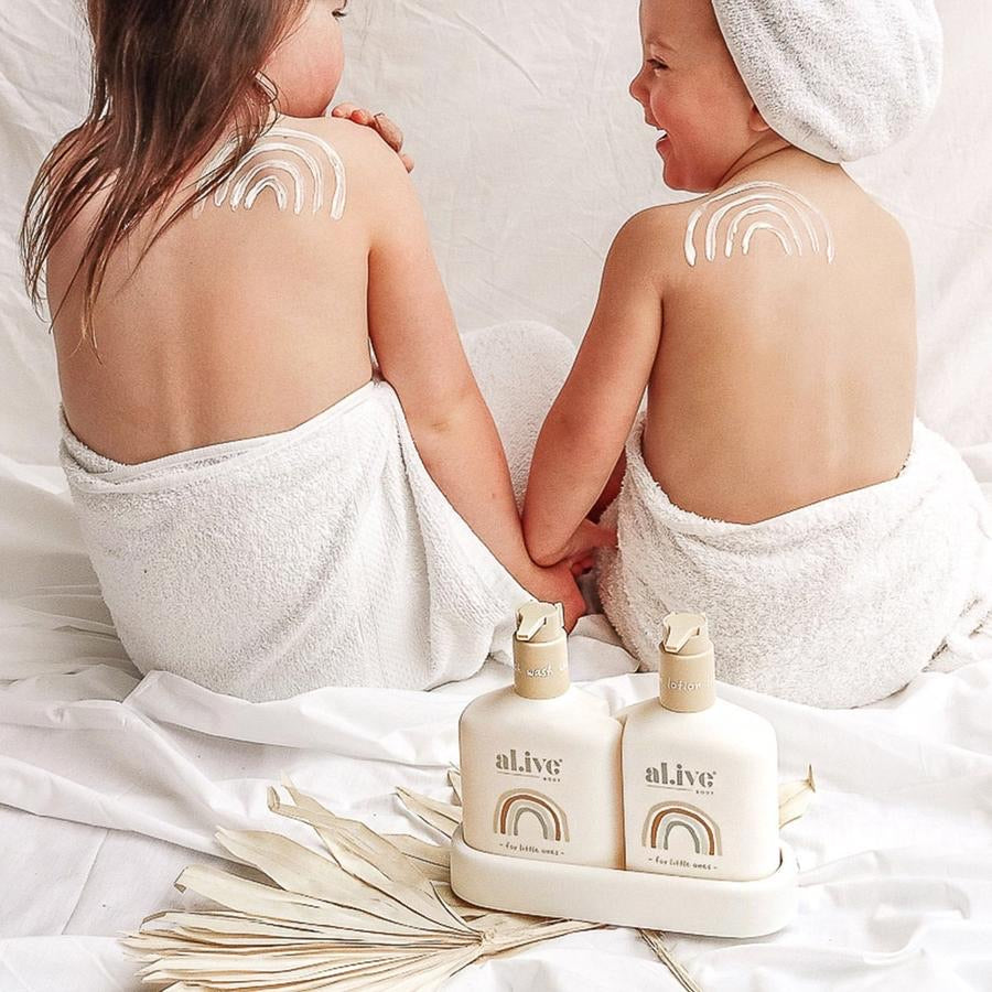 Introducing The Baby Duo, containing a 320ml Hair & Body Wash, 320ml Body Lotion and a matching tray, this duo uses carefully selected ingredients for young skin. Infused with Pear Extract, Jojoba Oil and Calendula this duo will work to cleanse and moisturise your little one’s skin.