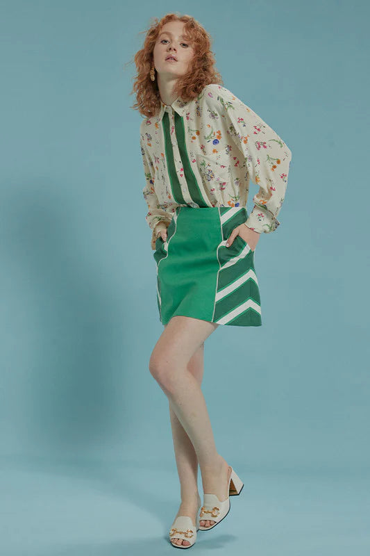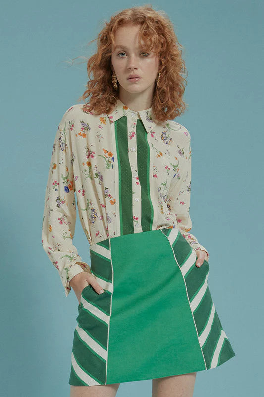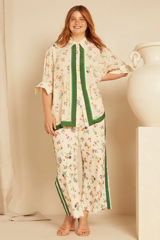 Bohemian Traders 'Bettina' shirt is cut for a boxy fit in luxurious dobby jacquared and delicately printed with an array of vintage-inspired florals. Wear yours with the matching skirt.