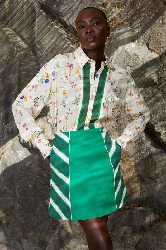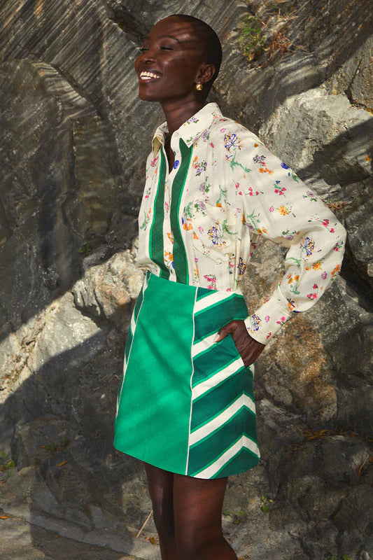 Stripes are a consistent theme at Bohemian Traders, and this mini skirt delivers. Cut from blended linen, it has side pockets and a sport inspired silhouette. Wear yours with the Bettina Classic Shirt and comfortable sandals.