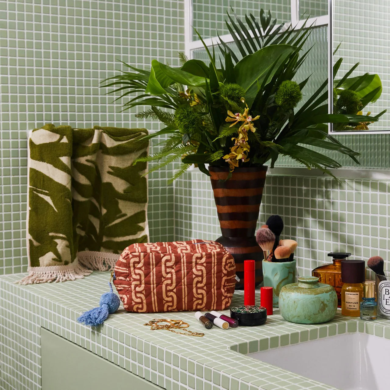 “Eye-catching nostalgic charm is the hallmark of the stylish and functional Fidel beauty bag. This vintage Italianate inspired print is perfect for adding personality to your bathroom and travel essentials.” – Phoebe’s Style Notes