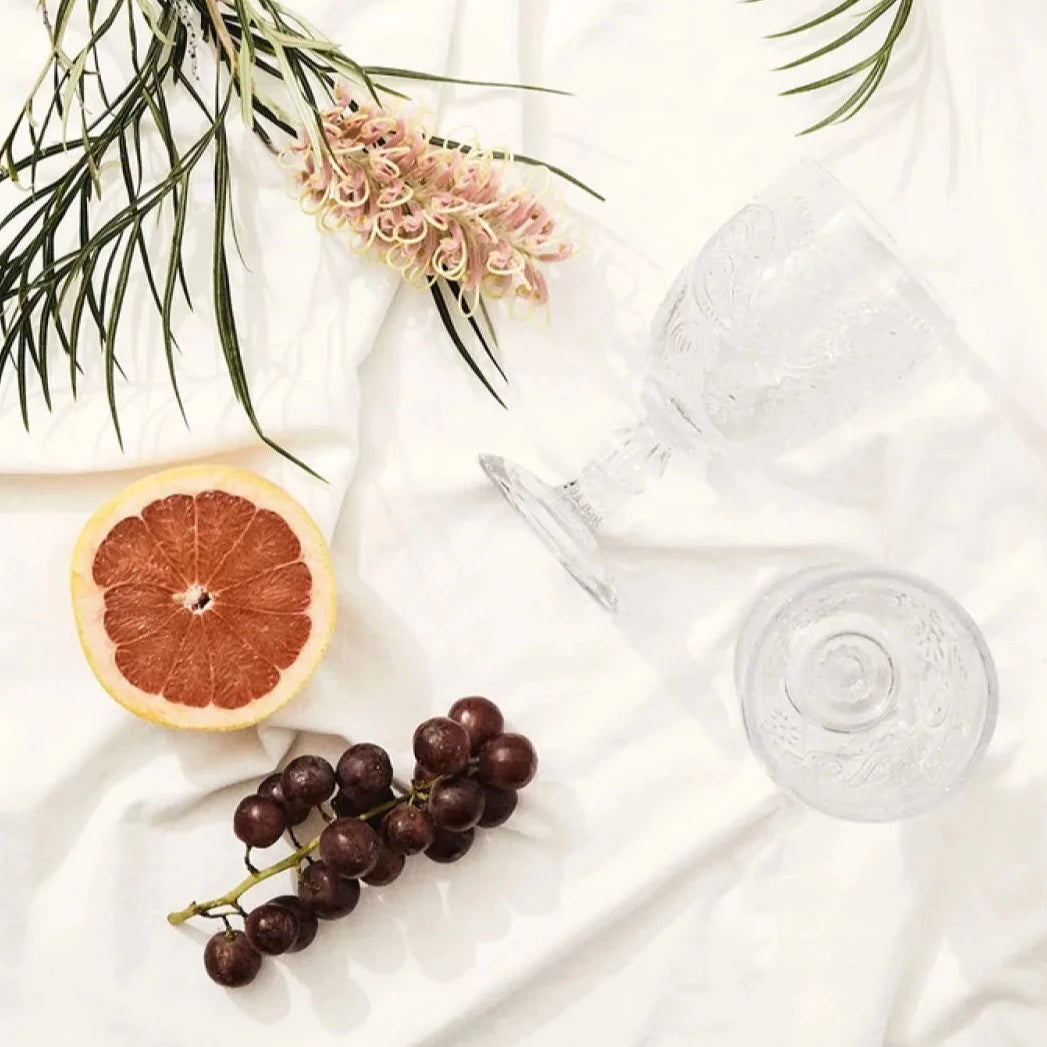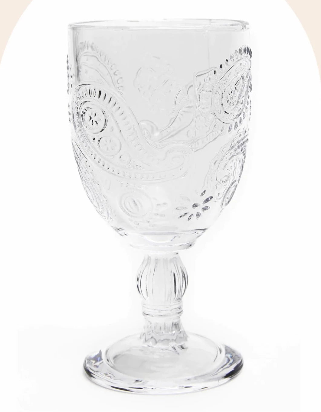 Set of 2 x Goblets in Clear Durable glass. This stunning set makes a bold picnic statement with its embossed paisley design.