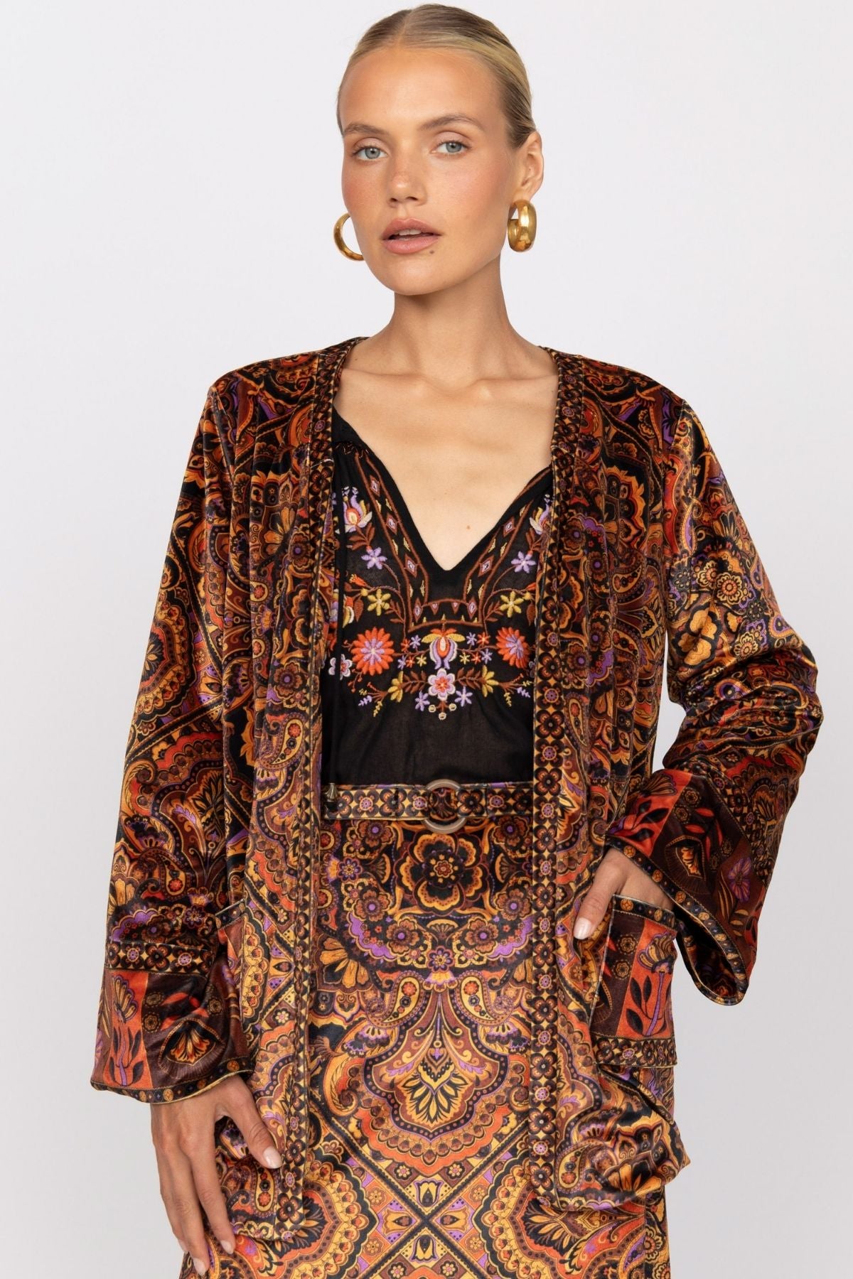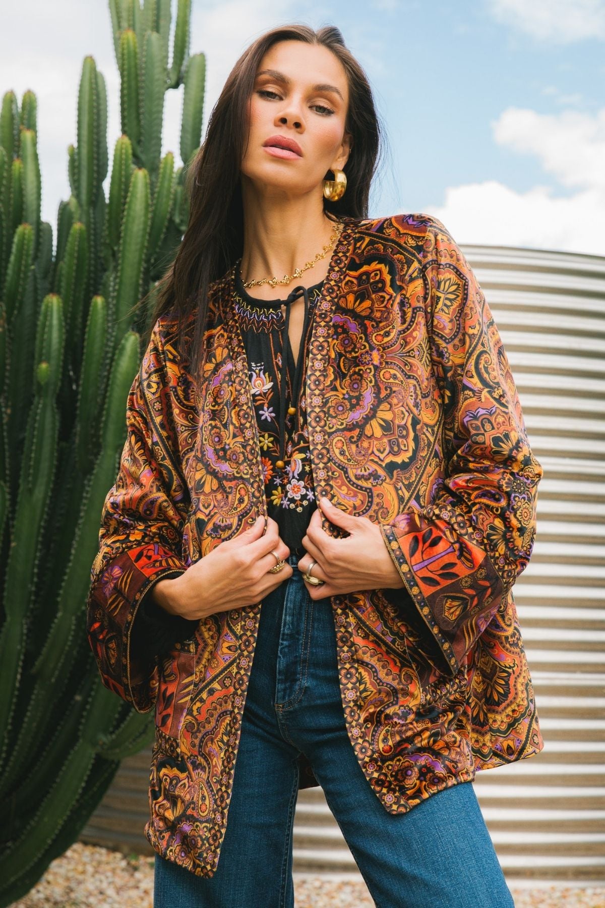 Hands down our favourite jacket to date - our Janis Jacket is plucked from our vintage dreams, revived in a gorgeous Ember printed colourway.