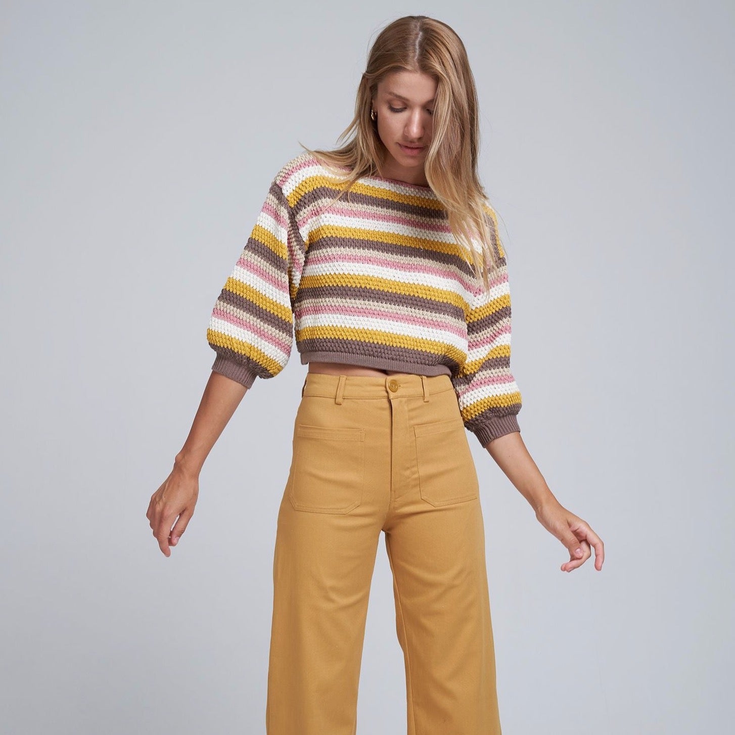Styled here with our Rainbow Top in Sunset Vibe.