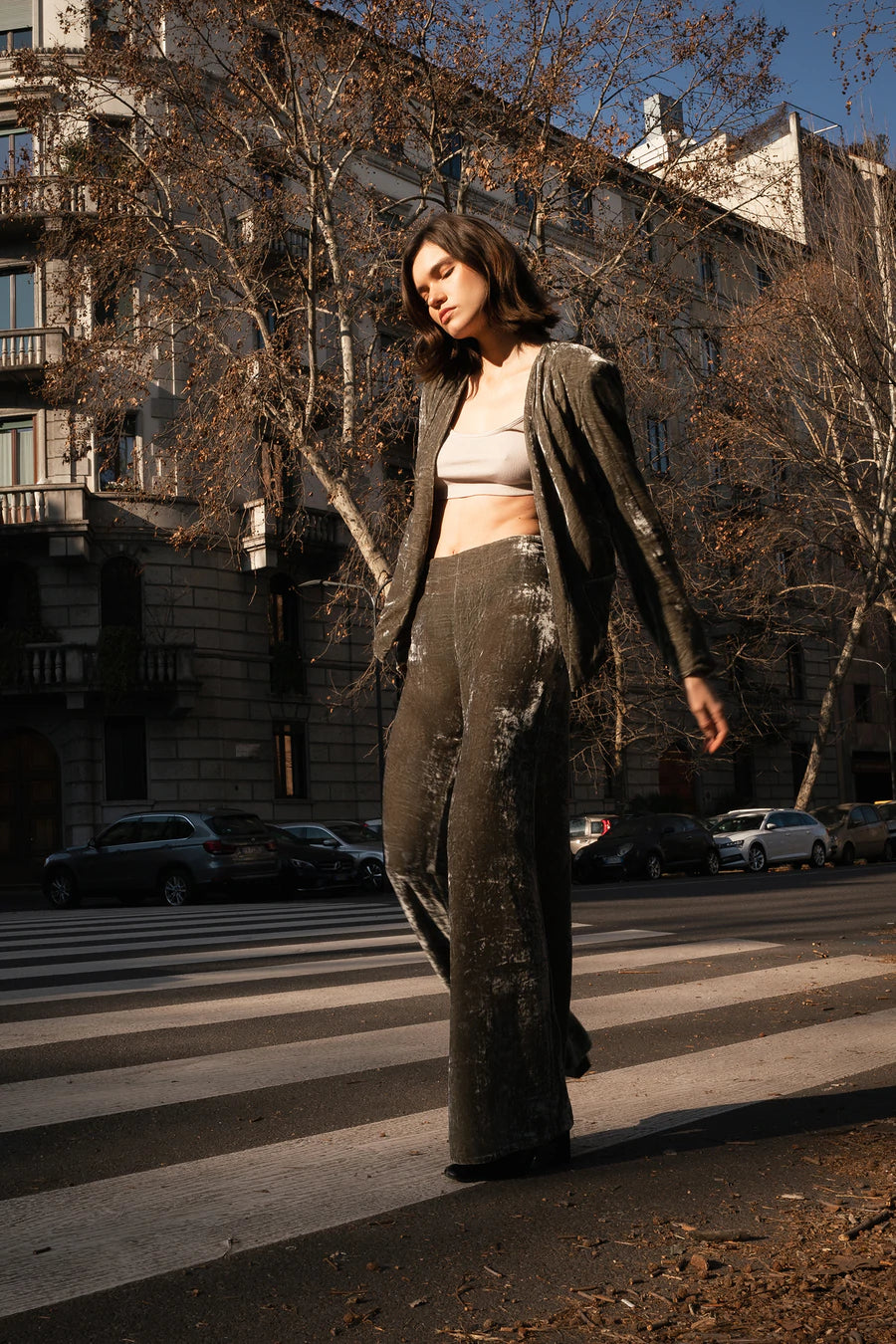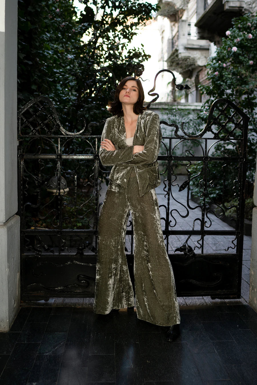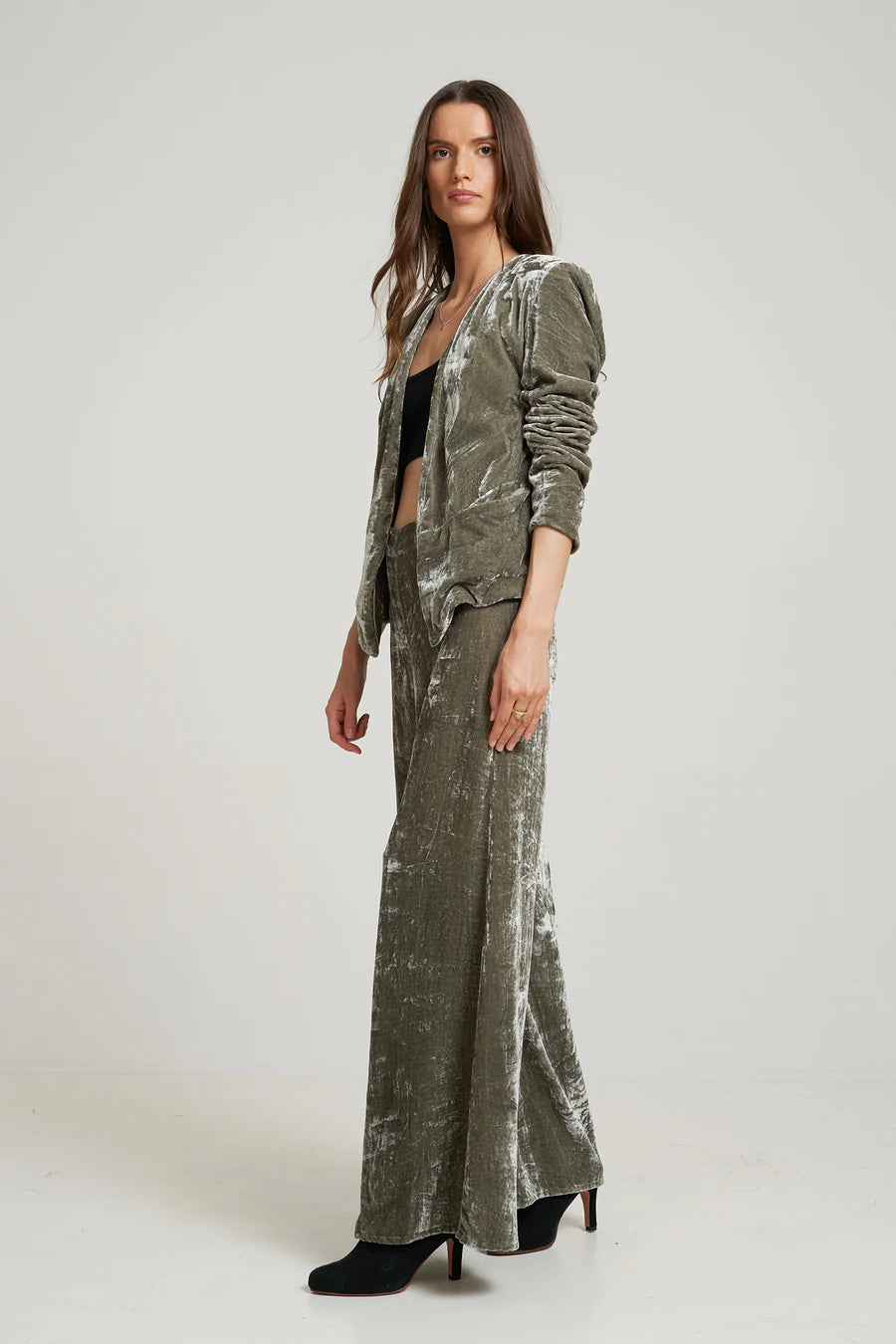 Step out and make a statement in these gorgeous, deluxe pants. These wide leg pants by LILYA are crafted in our luxurious silk velvet and inspired by the 70s. They feature a classic mid to high waistline, a side zip and fall into a dramatic wide leg. They will certainly become your favourite piece for the cooler months. They pair perfectly with our matching Alila Jacket, reminiscent of Bianca Jagger at Studio 54.