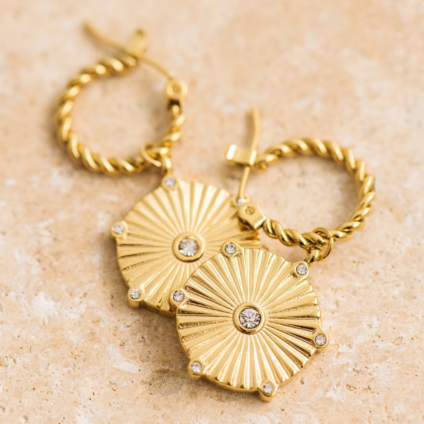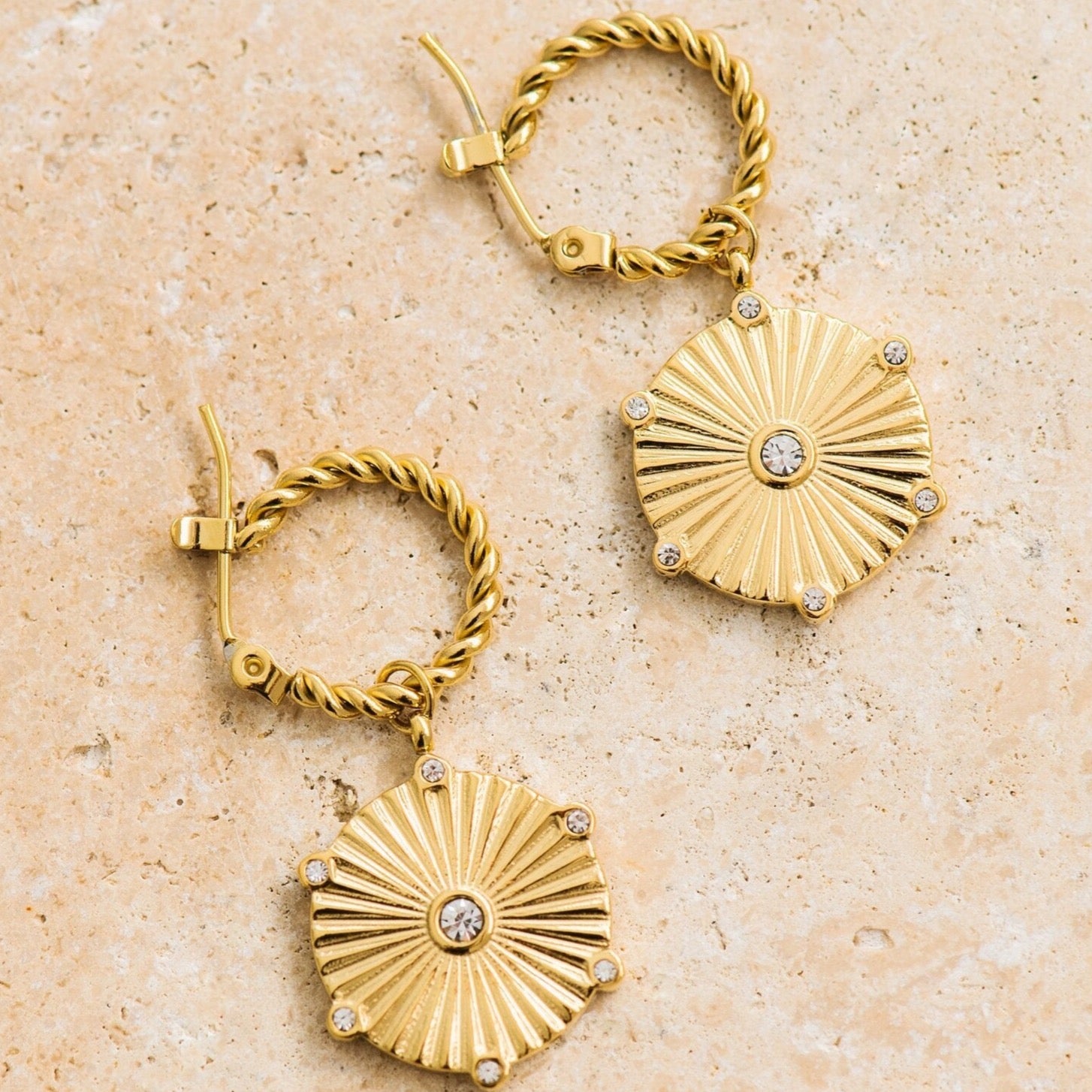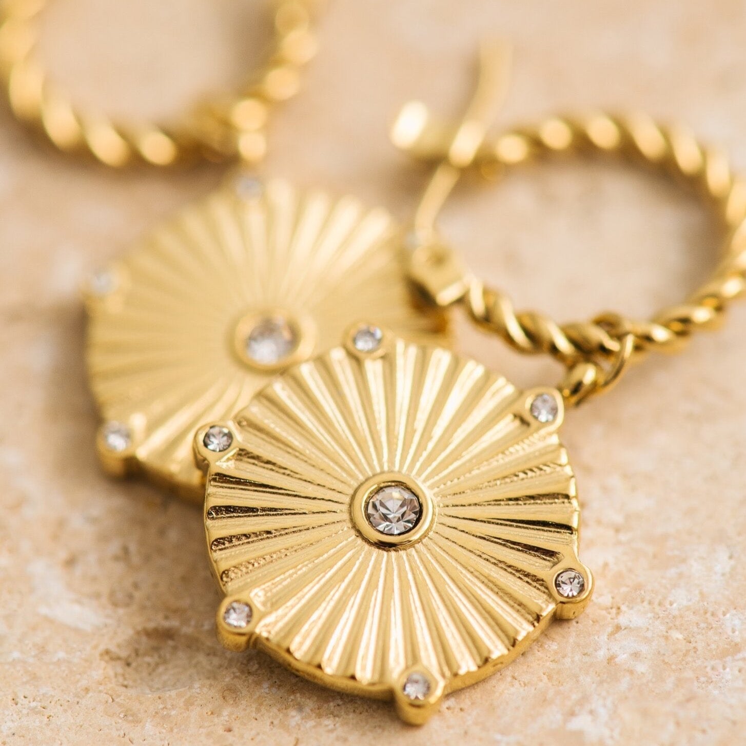 A stunning medallion featuring clear gemstones. Worn perfectly with the Medallion necklace.