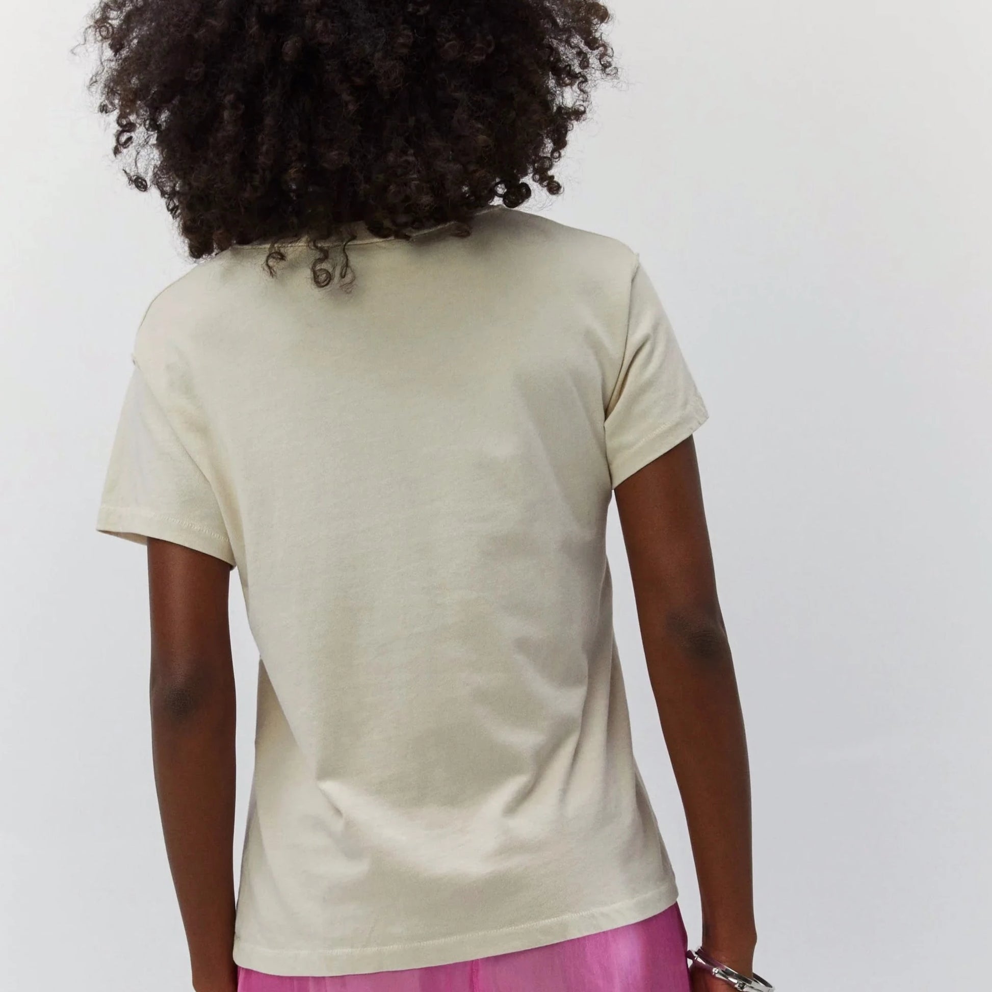 Slightly shrunken with that perfect length to tuck, our Girlfriend tee features a ladder stitch on all hems and a shorter sleeve, this fit is truly vintage inspired.