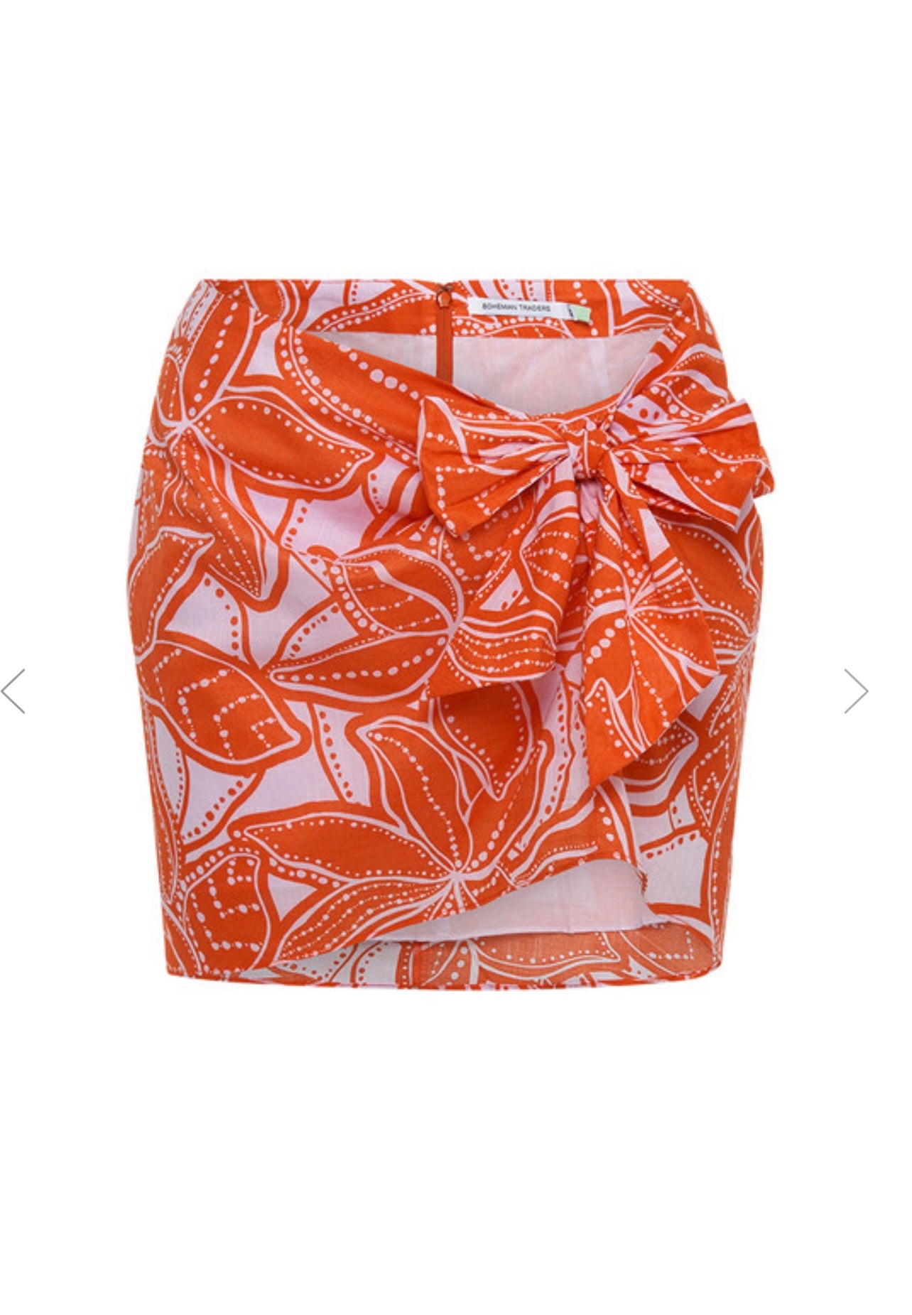 Bohemian Traders tie front mini skirt is made from 100% cotton that’s lightweight and practical. Printed with an abstract floral motif in lavender and orange, it has a fixed waist and gentle split to the side. Wear it with the co-ordinating blouse and strappy sandals.