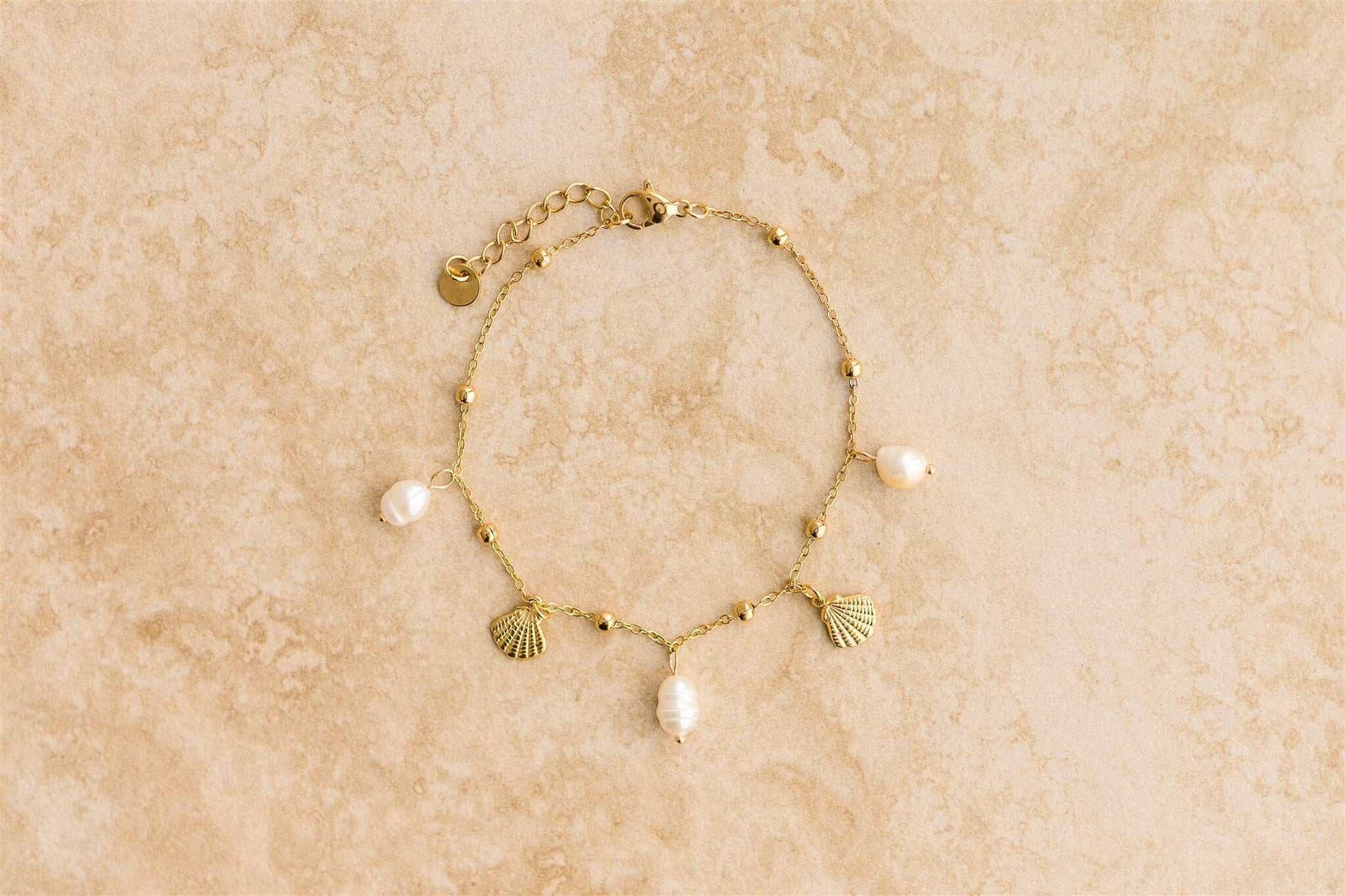 Our Oceana anklet features delicate pearl and shell charms and is designed for the bohemian beach babe.