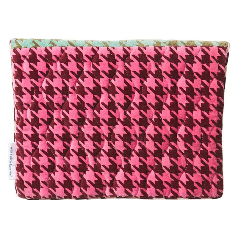 “A fresh take on a classic design, this luxurious clutch is the perfect size for carrying your most vital belongings when on the go. Its textural quilted velvet design and fun mix of multicoloured houndstooth brings excitement and playfulness to any ensemble.” – Phoebe’s Style Notes